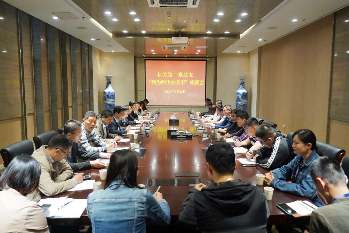 为推进机关党员党史学习教育深入开展,5月13日下午,机关第一党总支在图书馆会议室召开“我为师生办实事”座谈会。校党委副书记、党史学习教育领导小组办公室主任梁惠,机关第一党总支相关职能部门负责人及来自各二级学院教师代表参加座谈会。