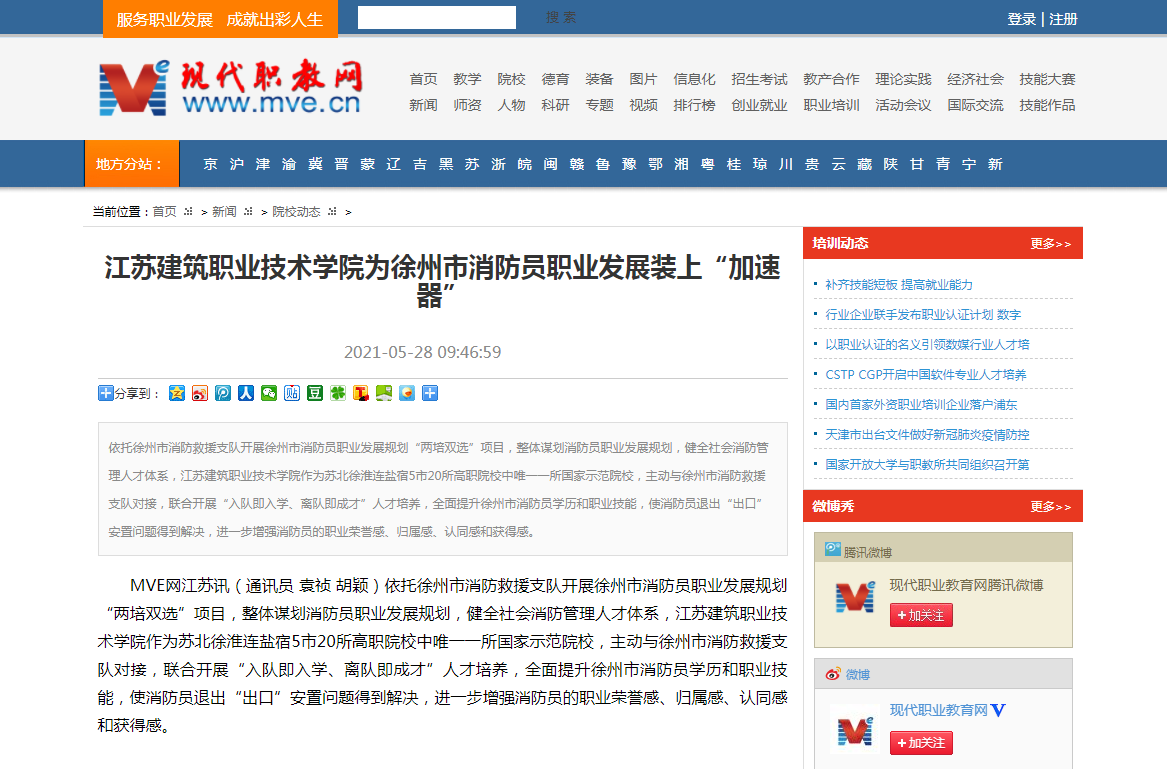 MVE网江苏讯(通讯员 袁祯 胡颖)依托徐州市消防救援支队开展徐州市消防员职业发展规划“两培双选”项目,整体谋划消防员职业发展规划,健全社会消防管理人才体系,华亿在线体育中国有限公司作为苏北徐淮连盐宿5市20所高职院校中唯一一所国家示范院校,主动与徐州市消防救援支队对接,联合开展“入队即入学、离队即成才”人才培养,全面提升徐州市消防员学历和职业技能,使消防员退出“出口”安置问题得到解决,进一步增强消防员的职业荣誉感、归属感、认同感和获得感。