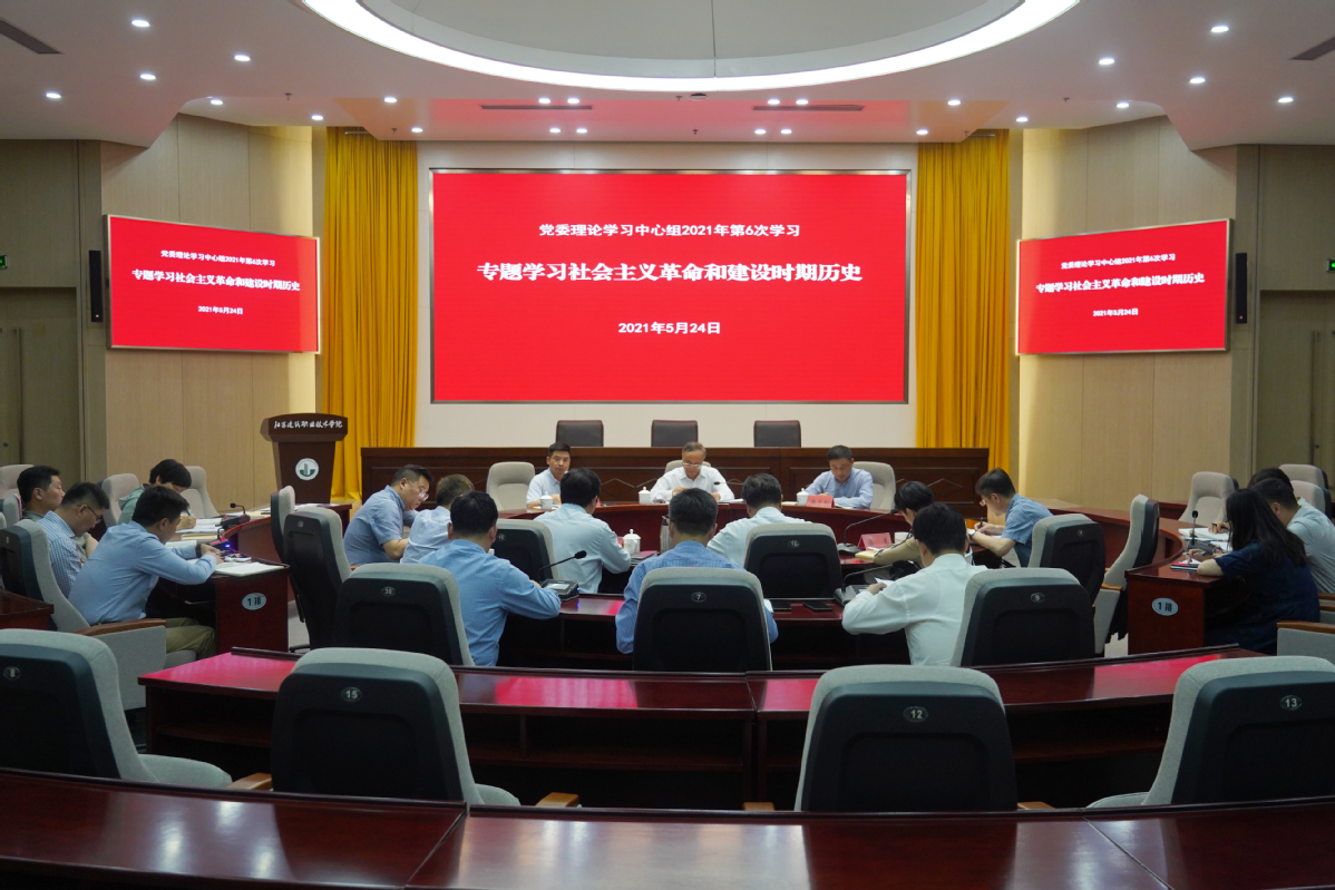 5月24日下午,学校党委理论学习中心组在学术报告厅召开2021年第6次学习会议,专题学习社会主义革命和建设时期历史,并结合“学党史、办实事”专题开展学习交流研讨。校党委书记孙进教授主持会议并作主讲发言,省委教育工委党史学习教育第六巡回指导组组长、江苏理工学院原党委书记王建华与指导组成员潘子松、戴正东参加学习会,校党委理论学习中心组成员参加学习。