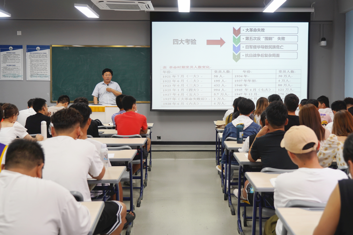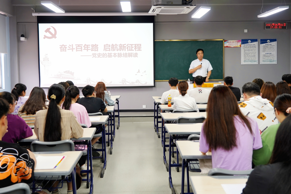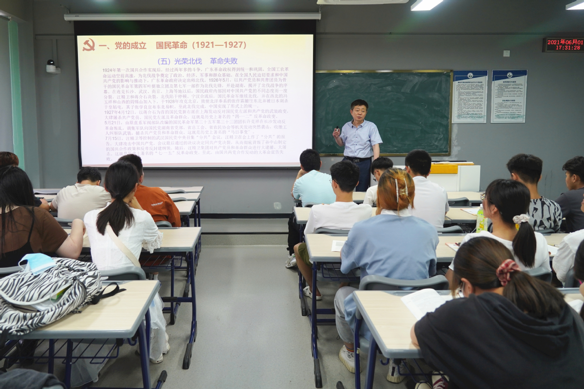 课堂上,各位领导以中国共产党百年奋斗历史的成功经验和优良传统为主线,按照时间脉络,通过史实案例、详实数据及清晰逻辑,从四个时期、九个阶段为学生们阐释了中国共产党历经百年风雨却能够长盛不衰的根本原因,引导同学们真正做到明理、增信、崇德、力行。
