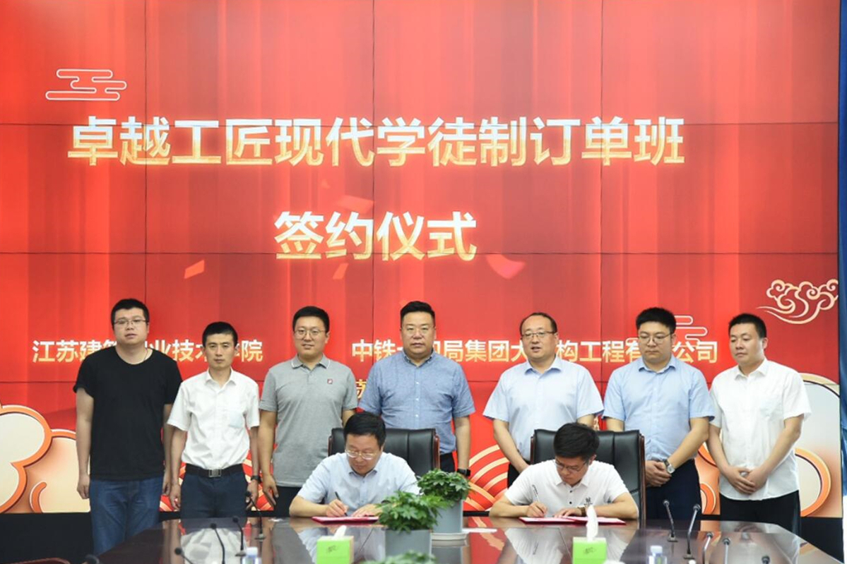 6月4日下午,我校与中铁十四局集团大盾构工程有限公司卓越工匠现代学徒制订单班签约仪式在南京举行。我校副院长刘海波,中铁十四局集团大盾构工程有限公司党委书记史庆涛,工会主席孙峰出席,校企合作处和交通工程学院相关负责人,在宁项目的10名校友代表参加了签约仪式。