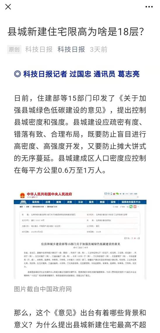 那么,这个《意见》出台有着哪些背景和意义?为什么提出县城新建住宅最高不超过18层?6月25日,科技日报记者走访了业内相关专家进行解读。
