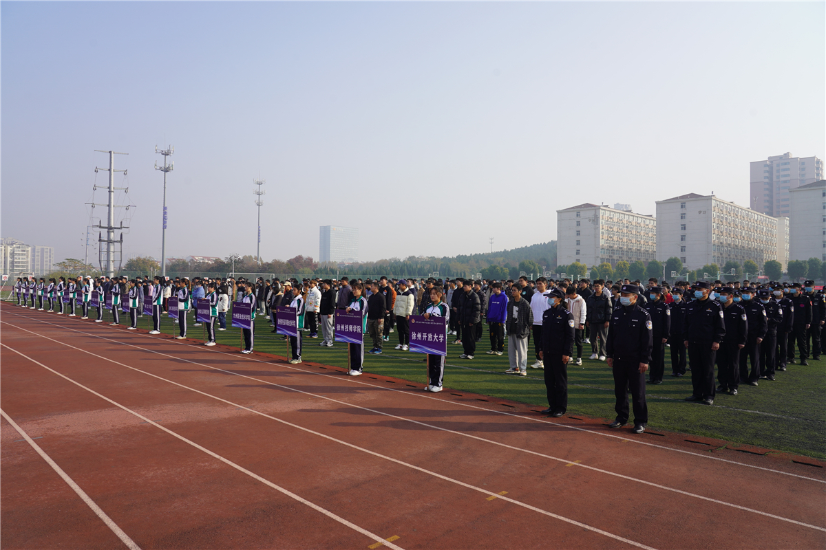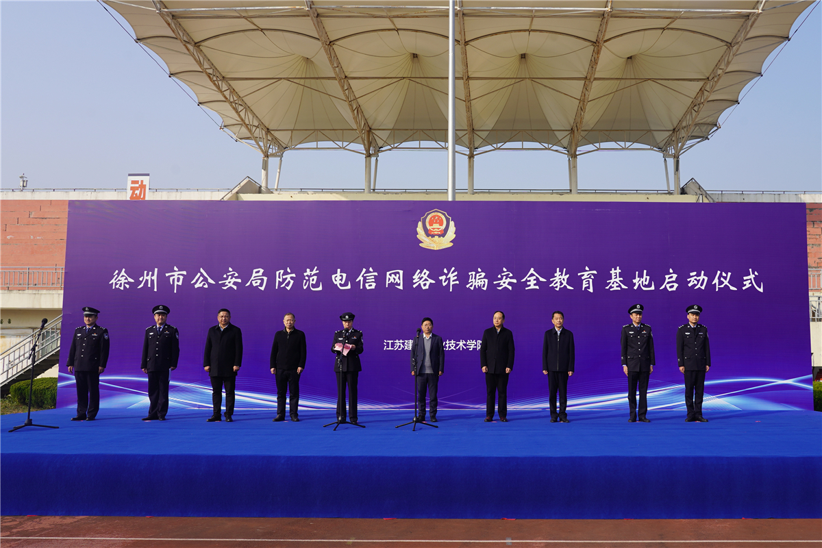 11月16日上午,徐州市公安局防范电信网络诈骗安全教育基地启动仪式在学校西操场举行。院长沈士德教授、副院长蒋兆峰、市公安局副局长刘丽涛、市教育局副局长徐志、各兄弟院校领导、校内外各相关单位负责人、30余名公安干警以及500余名学生代表参加启动仪式。
