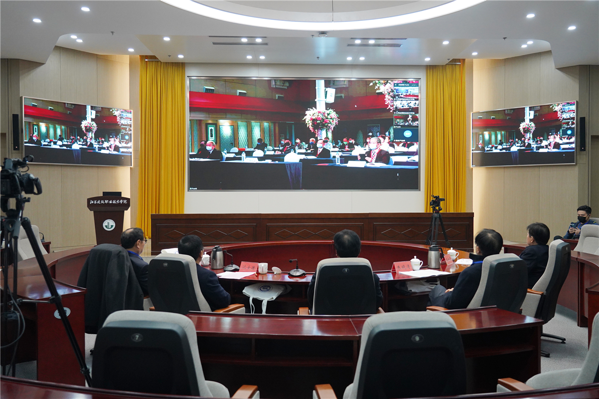 11月27日,第九届苏台高职教育校长联席会议学术年会暨第六届飞越海峡两岸青少年携手公益行颁奖仪式通过线上直播连线方式召开。大会主会场设在我校学术报告厅,两个分会场分别设在台湾龙华科技大学与江苏经贸职业技术学院。江苏省教育厅港澳台事务办公室主任贺兴初通过线上方式出席开幕式并致辞,徐州市台办主任朱晓清、交流处处长王加勇在我校主会场出席开幕式。校党委书记孙进教授、院长沈士德教授、副院长曾凡远及江苏省内50多所院校代表、台湾省内30余所院校代表参加了活动相关环节。