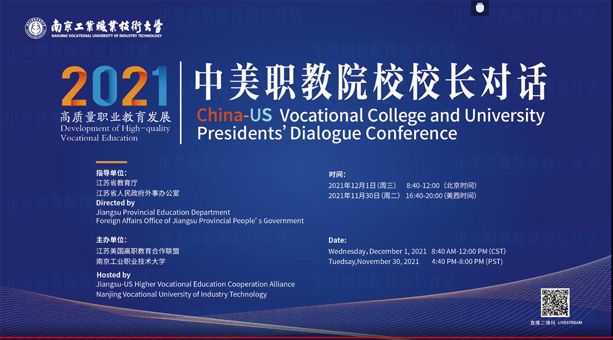 本次活动由江苏美国高职教育合作联盟和南京工业职业大学联合主办,9所美国院校、6所来自江苏的中国院校在线分享了有关职业教育高质量发展的探索经验与实践成效等内容。