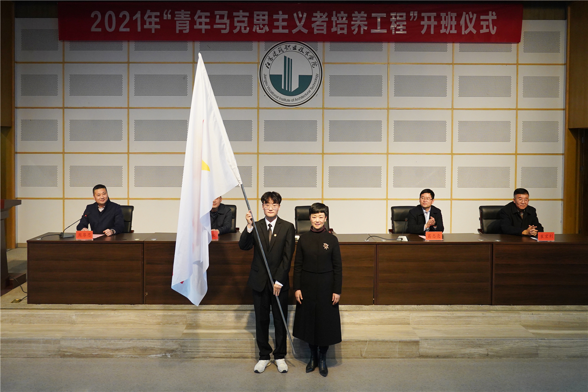 仪式上,校党委委员、宣传部部长葛志亮宣读了2020年“青年马克思主义者培养工程”结业名单。主席台领导向2020年学员代表颁发了结业证书,向2021年代表赠送了学习读物《习近平的七年知青岁月》。2020年学员代表建设19-1班杨柳分享了近一年的学习经历与成长感悟,2021年学员代表通信20-2班赵康旭上台表态发言并接过了梁惠授予的培训班“班旗”。