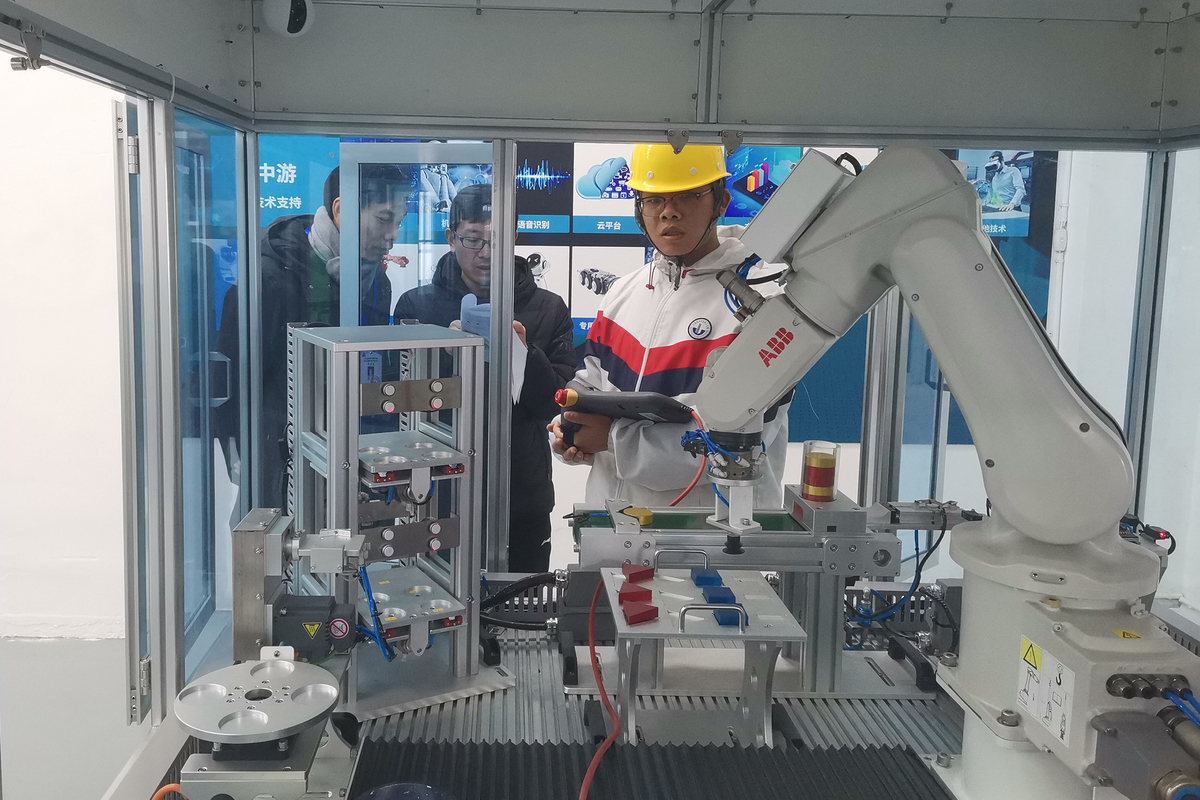 12月27日,教育部“1+X”工业机器人操作与运维职业技能等级(中级)认证考试在学校金东唐产教融合基地举行。考试期间,副院长曾凡远亲赴考点现场巡查考务组织情况。教务处、实验实训管理处、智能制造学院等单位承接此次考务工作。我校工业机器人技术等相关专业的48名学生参加此次考试。