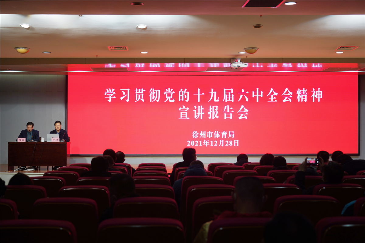 根据徐州市委统一部署安排,近日,徐州市委宣讲团成员、学校党委书记孙进教授赴新沂市、徐州市体育局作党的十九届六中全会专题宣讲。新沂市市委书记陈堂清,市体育局党委委员、副局长、局机关党委书记有昆分别主持报告会。新沂市委领导班子和徐州市体育局全局领导出席报告会。