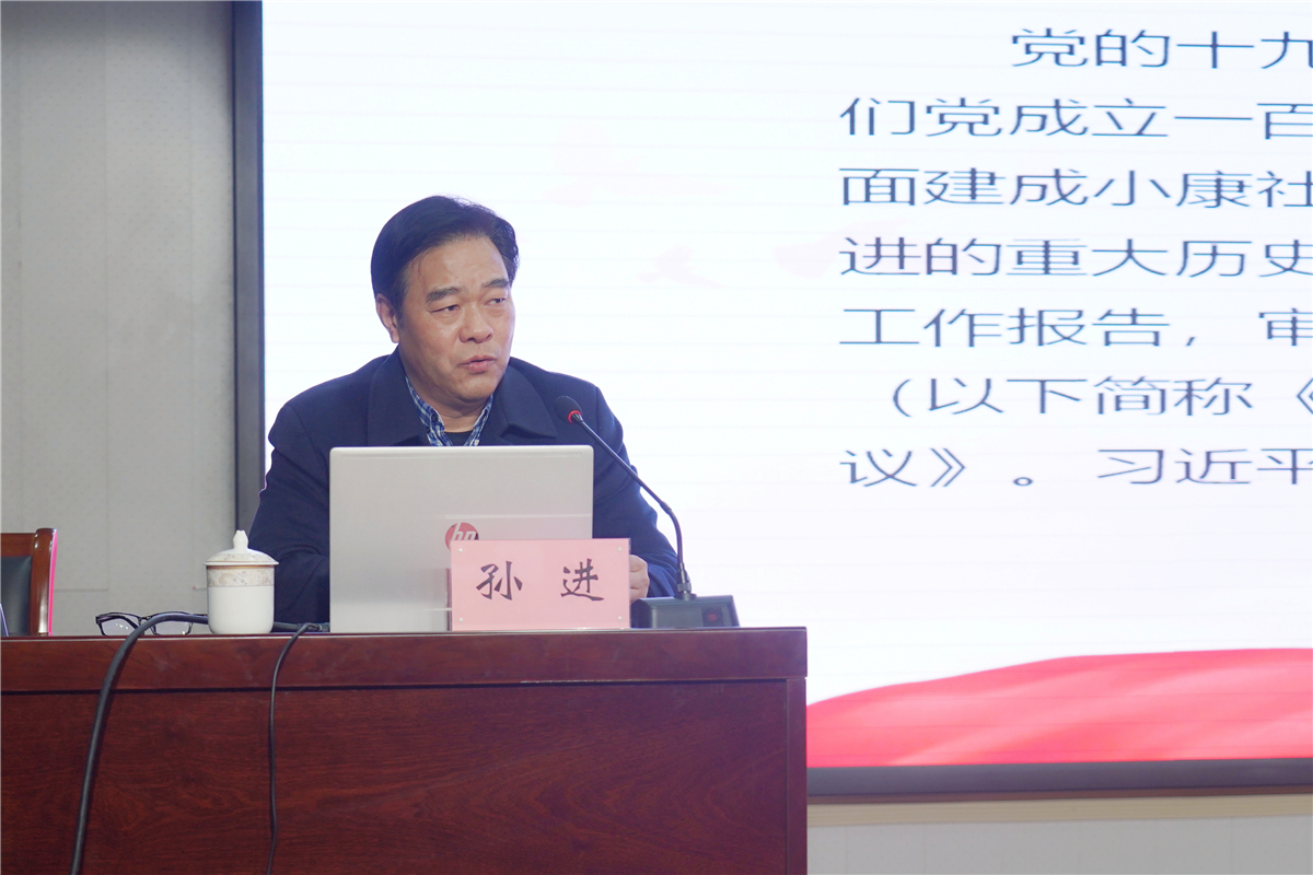 报告会上,孙进紧扣学习贯彻习近平总书记在党的十九届六中全会上的重要讲话和全会审议通过的《中共中央关于党的百年奋斗重大成就和历史经验的决议》,聚焦中国共产党成立以来取得的重大实践成就、重大理论成果、宝贵历史经验,围绕“深刻认识总结党的百年奋斗重大成就和历史经验的重大意义”“深刻认识党的百年奋斗的初心使命和重大成就”“深刻认识中国特色社会主义新时代的历史性成就和历史性变革”“深刻认识党的百年奋斗的历史意义和历史经验”“深刻认识以史为鉴、开创未来的重要要求”和“从党的百年奋斗历程中汲取智慧和力量”等六大方面对党的十九届六中全会精神进行了系统宣讲和深入解读。