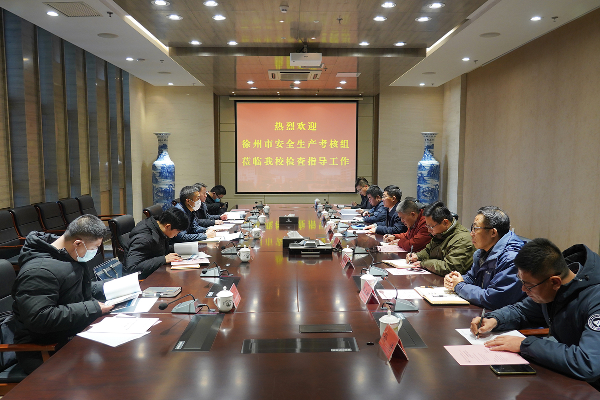 12月30日下午,徐州市安全生产第五考核组一行五人,在市应急管理局四级调研员黄建忠的带领下,对我校2021年度安全生产工作进行考核,考核汇报会在图书馆第一会议室举行。院长沈士德教授和相关单位负责同志参加汇报会。