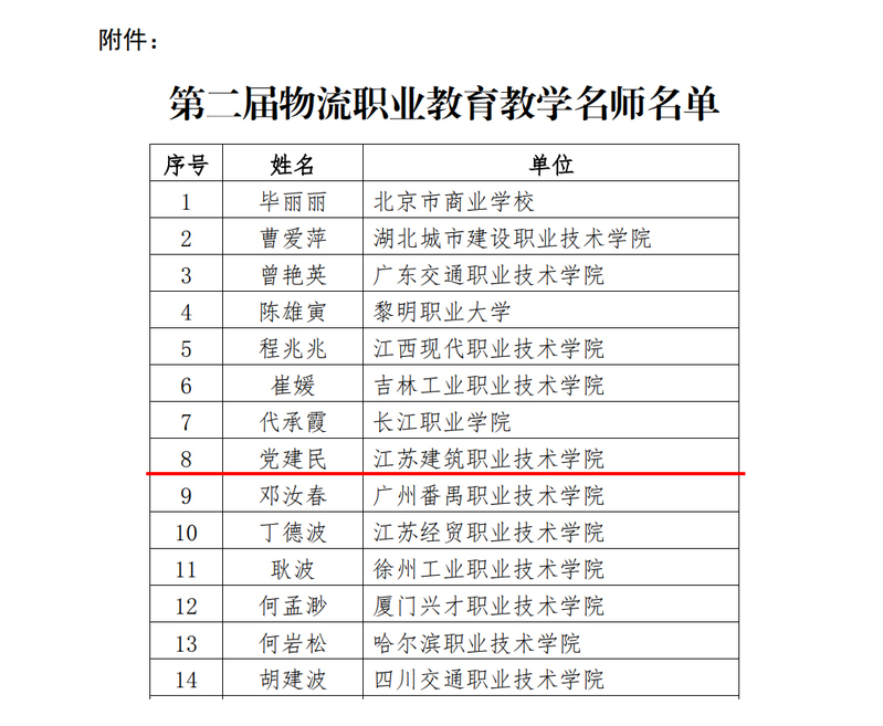 12月29日,全国物流职业教育教学指导委员会发布《关于公布第二届“物流职业教育教学名师”名单的通知》(物职教指字〔2021〕11号),我校经济管理学院教师党建民名列其中,获评全国“物流职业教育教学名师”称号。