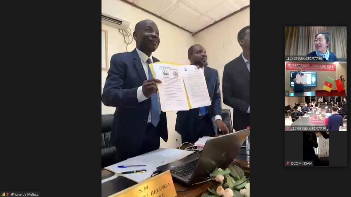 1月14日下午,我校与喀麦隆文理学院举办线上洽谈会,商讨承办“未来非洲——中非职教合作项目”相关事宜并举行签约仪式。副院长曾凡远、喀麦隆文理学院校长埃勒·皮埃尔及两校各相关单位负责人参加会议。我校会场设在信电工程学院会议室,会议由国际交流与合作处副处长王静主持,非洲计算机学院校长阿班达作为见证嘉宾在喀麦隆会场出席会议。