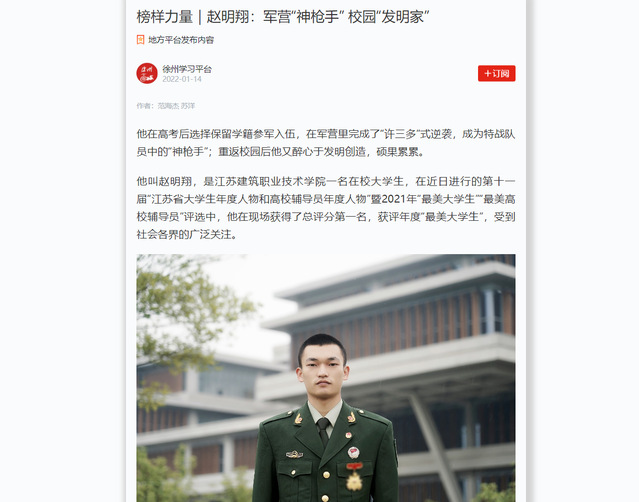 带着这份沉甸甸的经历,赵明翔退伍后又开启了大学生活的新征程。