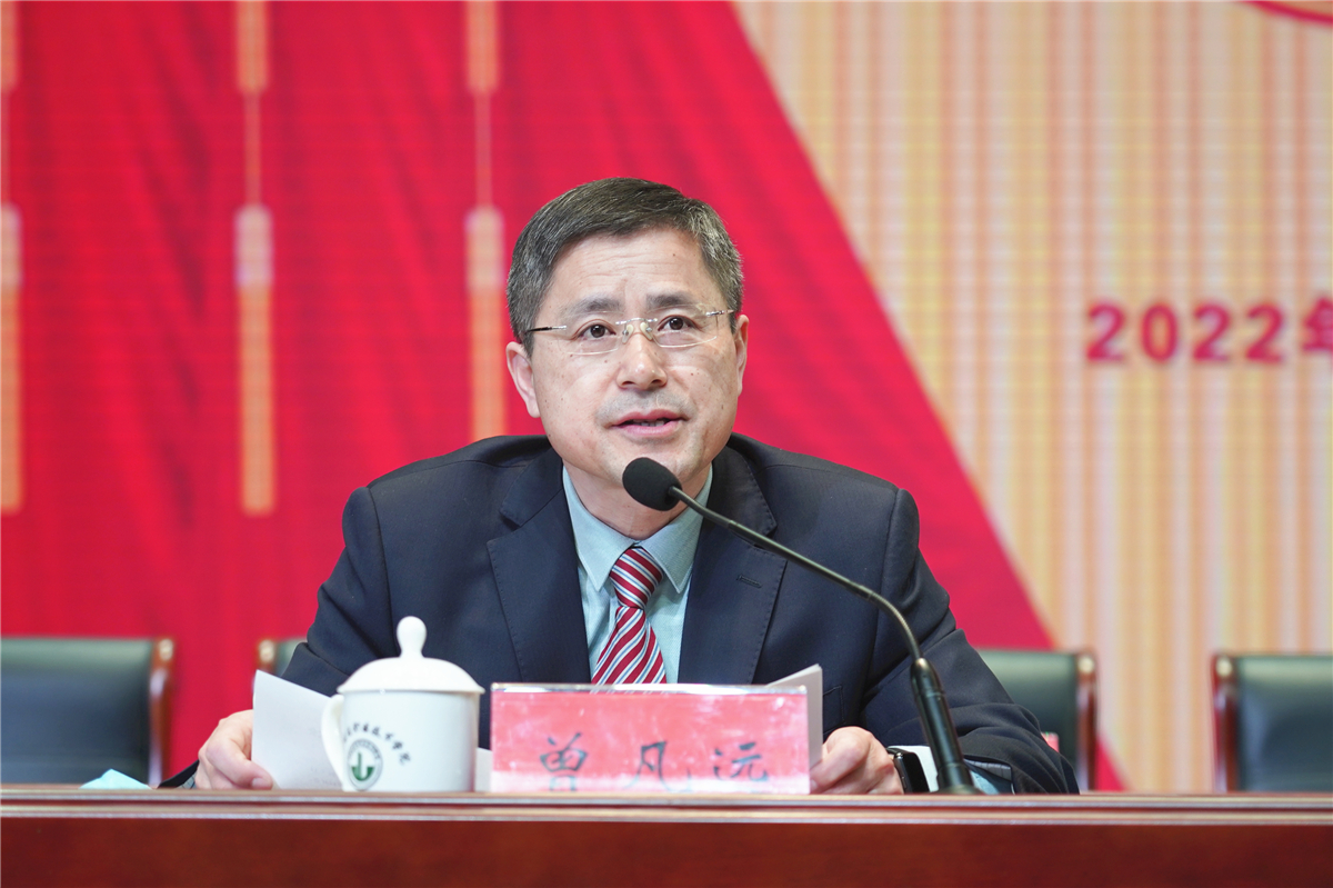 党委书记孙进教授就贯彻会议精神、抓好年度任务和加快学校高质量发展等方面内容谈了三点意见。第一,统一思想,凝聚共识,提振高质量发展“精气神”。他指出,推进学校事业发展的“精气神”,就是要体现在人的精神面貌上、作风状态上和风采形象上。学校“十四五”提出了发展职业本科教育的奋斗目标,责任重大,使命光荣,在干事创业劲头上,全体师生员工要做好传承,持续发挥党的政治优势,强化党建引领作用,筑牢学校高水平建设、高质量发展的动力源泉。第二,守正创新,踔厉不怠,提升高质量发展“加速度”。各级党组织、各单位部门,要进一步解放思想,蓄能加力,坚持创新发展,加快内涵建设,补齐短板,抓牢机遇,扩大优势,提高建设成效,助力提升发展。第三,聚焦聚力,勇担使命,绘就高质量发展“同心圆”。广大领导干部要带领本单位、本部门职工,尽快投入全年工作,以更牢初心勇担使命,以更高政治定力攻坚克难,营造“心往一处想、劲往一处使”的事业氛围,以时不我待的紧迫感、只争朝夕的使命感和奋斗有我的责任感,助力学校高质量发展再上新台阶,以优异的成绩向党的二十大献礼!