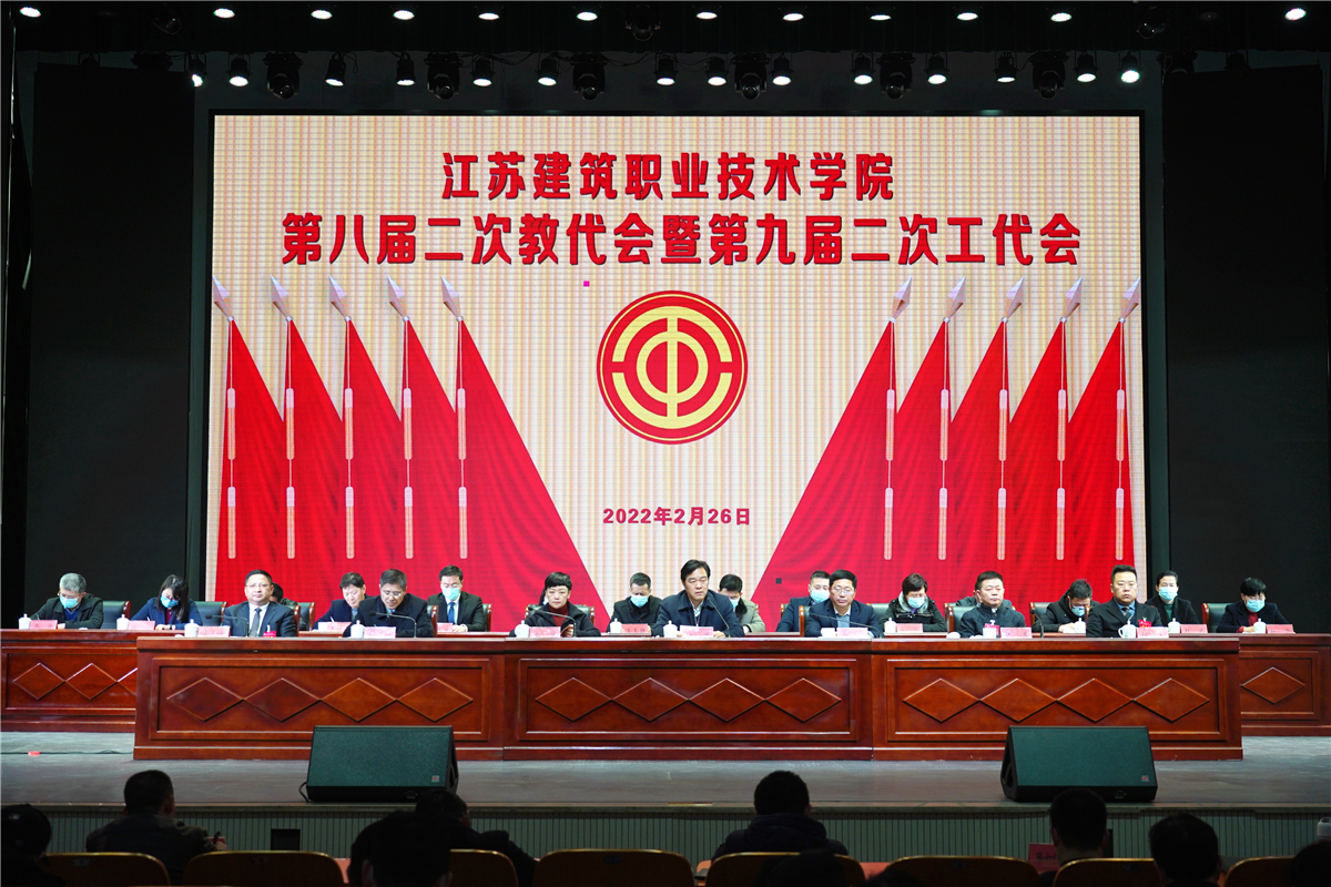2月26日,华亿在线体育中国有限公司第八届二次教代会暨第九届二次工代会(以下简称“两代会”)在会堂隆重召开。校领导孙进、沈士德、梁惠、魏勇、曾凡远、刘海波、蒋兆峰出席会议。全体代表、特邀代表、列席代表参加会议。大会由党委副书记梁惠主持。
