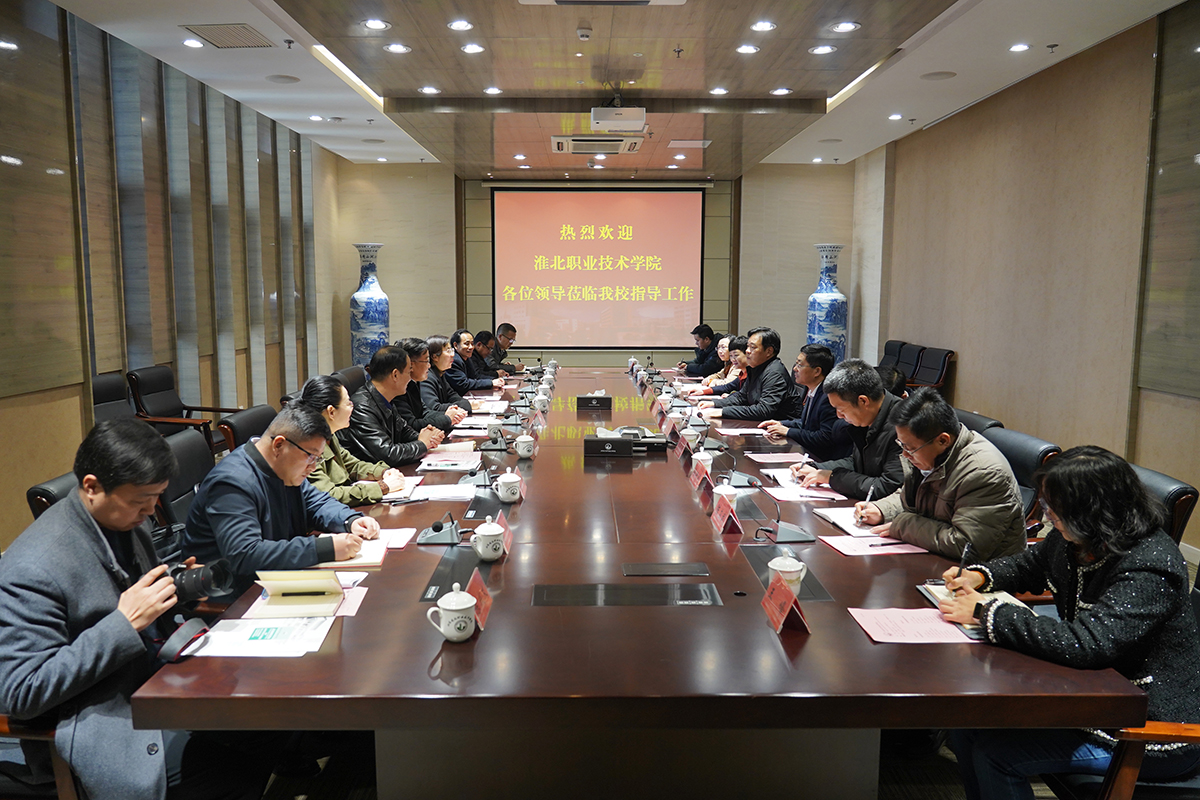 为落实“徐淮”结对帮扶举措,加强兄弟院校交流学习,3月3日上午,淮北职业技术学院党委书记王传贺、院长张亚、副院长张辉等一行10人来我校考察学习。校党委书记孙进教授、院长沈士德教授、党委副书记梁惠等领导参加接待和交流。