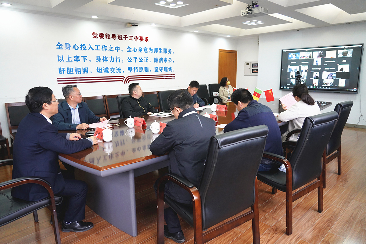 非洲计算机学院院长阿班达、喀麦隆文理学院院长埃勒、印尼中爪哇教育厅博罗丁及留学生代表分别发言,表达了对我校的感谢以及对合作项目顺利开展的信心。他们表示,期待疫情结束后的有机会来华交流、实习、开展活动。