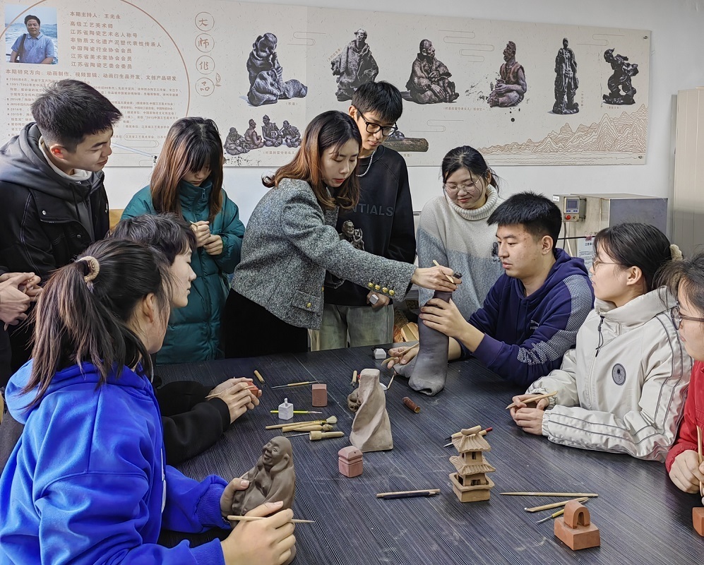近三年来,江苏建筑职院组建艺术设计专业团队,专门针对徐州民间非遗开展了系统的田野调查工作。他们汲取区域文化养分,项目化开展教学实践,对接专业特色建设,坚实区域人才培养定向,柔性引进非遗传承人,定期开展“24小时工作坊”,逐步打造非遗活化创新的院校品牌。他们让非遗传承人“手把手”“面对面”地向学生开展现场实作培训。