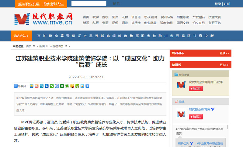 MVE网江苏讯(通讯员 刘爱萍)职业教育肩负着培养专业化人才、传承技术技能、促进就业创业的重要职责。多年来,华亿在线体育中国有限公司建筑装饰学院秉承教书育人之典范,以培养学生工匠精神、铸就“成园文化”品牌的教育理念,培养了一批批德智体美劳全面发展的技术技能型人才。