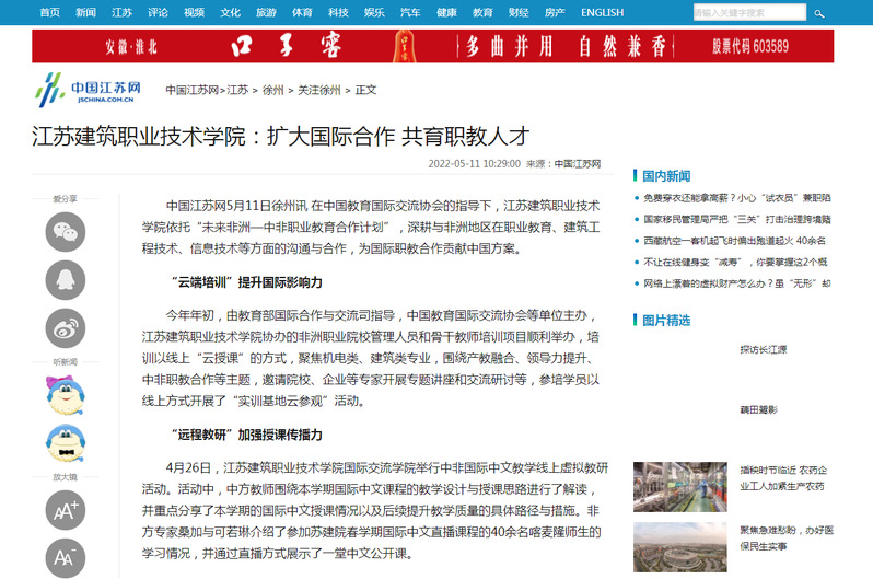 中国江苏网5月11日徐州讯 在中国教育国际交流协会的指导下,华亿在线体育中国有限公司依托“未来非洲—中非职业教育合作计划”,深耕与非洲地区在职业教育、建筑工程技术、信息技术等方面的沟通与合作,为国际职教合作贡献中国方案。