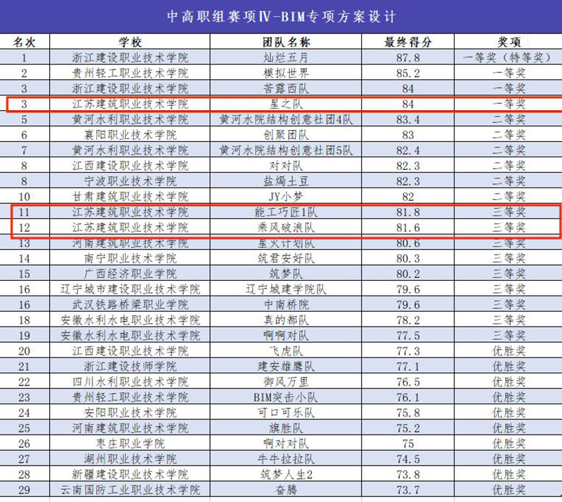 5月7日至8日,第三届“品茗杯”全国高校BIM应用毕业设计大赛全国总决赛在杭州以线上直播、多会场同时连线等形式开展,我校建筑管理学院选送的5支参赛队获得佳绩。李静、陈秀杰两位老师指导的参赛队获中高职组特等奖,五位学生成员分别为王治阳、张正一、张佳琦、丁芮、陈昊。王婷、史超男指导的参赛队获一等奖,其他三支参赛队均获三等奖。我校荣获优秀组织奖。