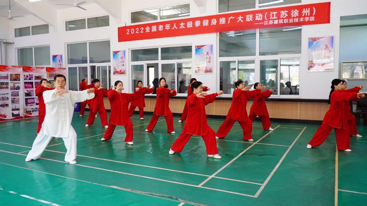 为推动我校老年人体育事业持续健康发展,5月23日下午,我校积极响应2022年全国老年人太极拳健身推广大联动(江苏徐州)活动,特邀校太极拳社团全体成员,在教职工活动中心进行太极拳推广展示。徐州高校老年体协副会长、校关工委常务副主任任留钦及离退休工作处负责人参加活动。活动由离退休工作处处长虞莉主持。