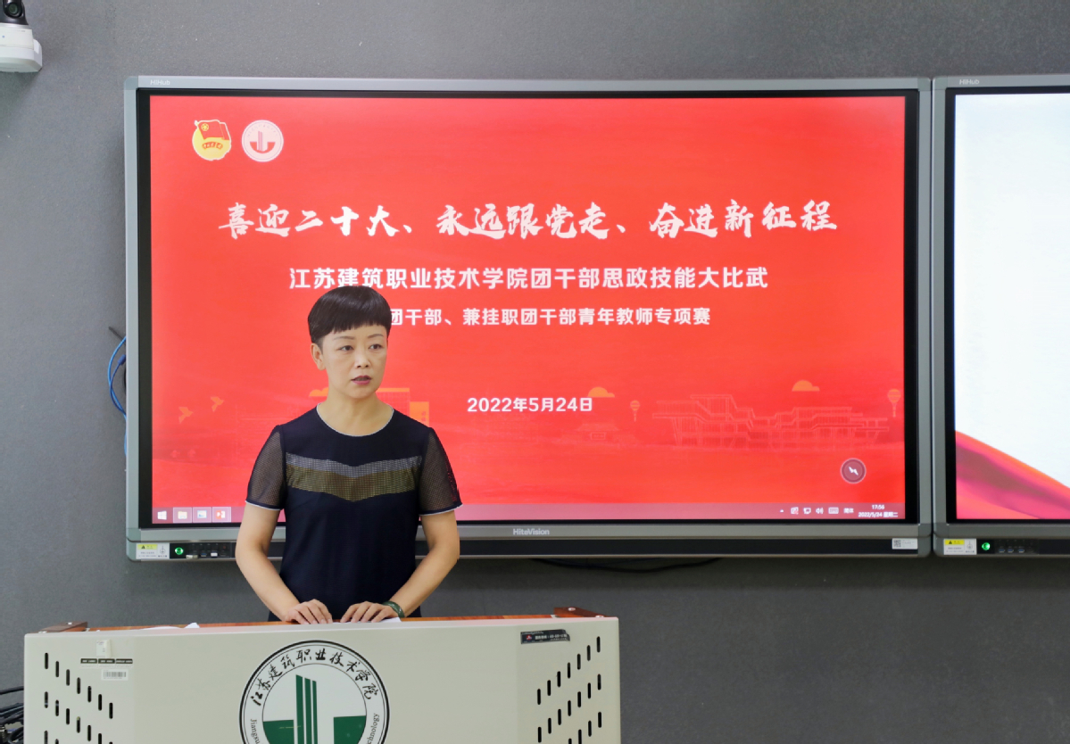 为响应共青团江苏省委举办的“江苏高校百校万名团干部思政技能大比武”活动,切实提升学校共青团工作活力,近日,我校在教一楼智慧教室举行“喜迎党的二十大、永远跟党走、奋进新征程”团干部思政技能大比武系列竞赛活动。党委副书记梁惠出席活动部分赛项并讲话,机关党总支、马克思主义学院、校团委等单位负责同志担任评委。各二级学院团委共推荐21名学生、12名教师参加活动。