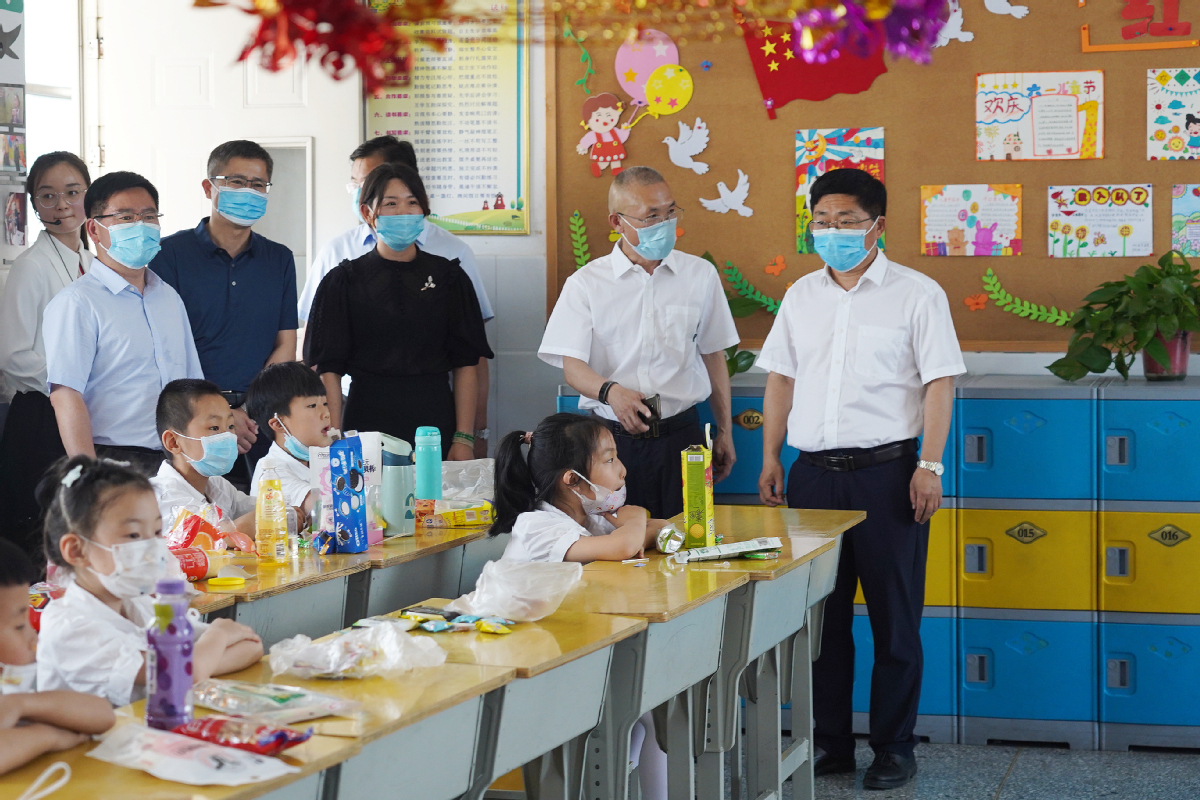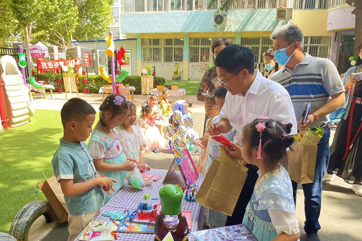 上午,沈士德一行来到附属幼儿园,向孩子们表达了节日祝福、送上慰问金并参与了孩子们的“国风汉韵迎端午,童趣集市过六一”活动。击鼓、系彩绳、画额、熏艾草、模拟跳蚤市场,活动内容丰富多彩,展现了附属幼儿园孩子们的良好精神风貌。沈士德表示,幼儿教育是人生教育的基础,要遵循幼儿发展规律,顺应孩子们天性,循循善诱、因材施教,给孩子们一个满载美好记忆的童年。