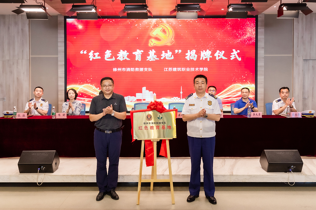 活动中,蒋兆峰和张义林共同为“徐州市消防救援支队红色教育基地”揭牌,学校思想政治教育基地正式挂牌成为拓宽消防指战员受教育渠道的又一重要学习场所。揭牌仪式结束后,双方举行互聘仪式,支队聘请我校“红色文化志愿宣讲团”师生为“红色教育基地志愿宣讲员”,我校聘请支队官兵为“校外消防安全辅导员”。