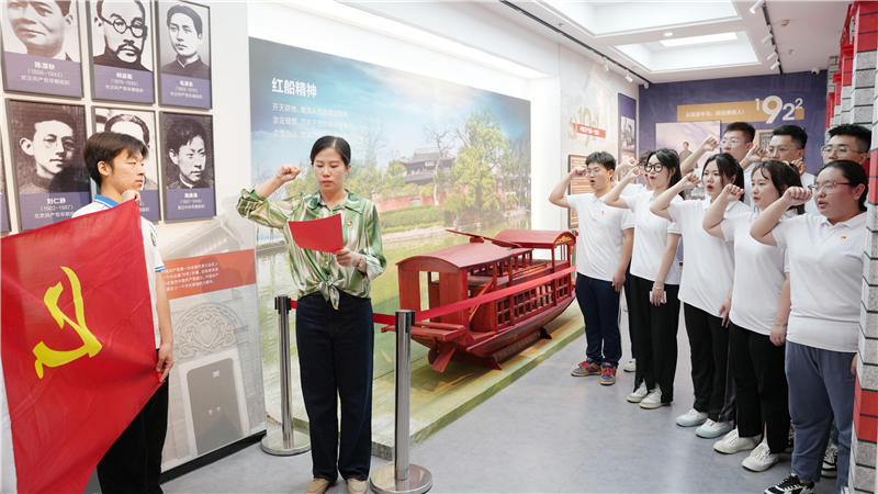 中国江苏网6月20日徐州讯 “我志愿加入中国共产党,拥护党的纲领,遵守党的章程,履行党员义务,执行党的决定……”近日,在华亿在线体育中国有限公司思想政治理论课教学实践基地红船实景前,2019级装饰学院学生党支部全体毕业生党员面对党旗重温入党誓词,砥砺入党初心。