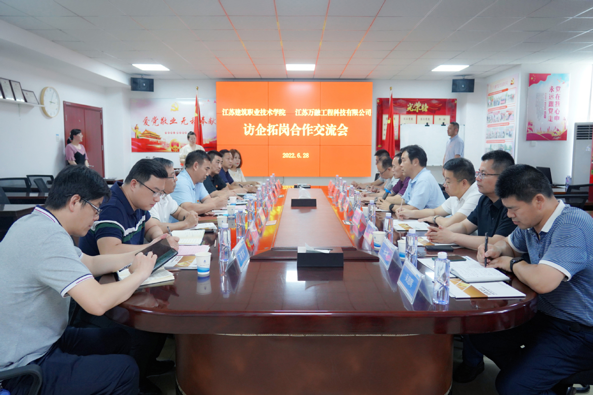 6月28日下午,党委书记孙进教授带队走访建筑特企江苏万融工程科技有限公司,开展访企拓岗活动,推进双方深度合作交流,加强校企党建共建。副院长刘海波,徐州市私营个体经济党委所属泉山区私个党委书记张恩乐、副书记张小诺,江苏万融工程科技有限公司总经理王进、徐州分公司经理张军,万融党总支书记王优及学校招生与就业处、校企合作处、建筑建造学院等单位负责人参加活动。