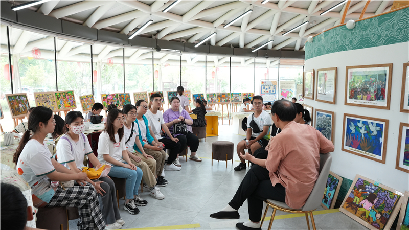 “不管现实条件多么的恶劣,我要用自己毕生的精力和所学,创造条件向儿童传递幸福教育,发扬传承睢宁儿童画。”8月9日上午,苏建院暑期社会实践的师生们在王集镇儿童画创客中心聆听了全国优秀共产党员、先进工作者、全国儿童画名师、江苏“最美教师”朱永在儿童画领域40年来的执着、奋进、感人的育人故事。同学们被朱永老师40年来,扎根乡村美育发展、潜心从事儿童画教育工作,教会孩子们用眼睛去发现美,用画笔去描绘美,用心灵去沉淀美的事迹和精神深深感动。