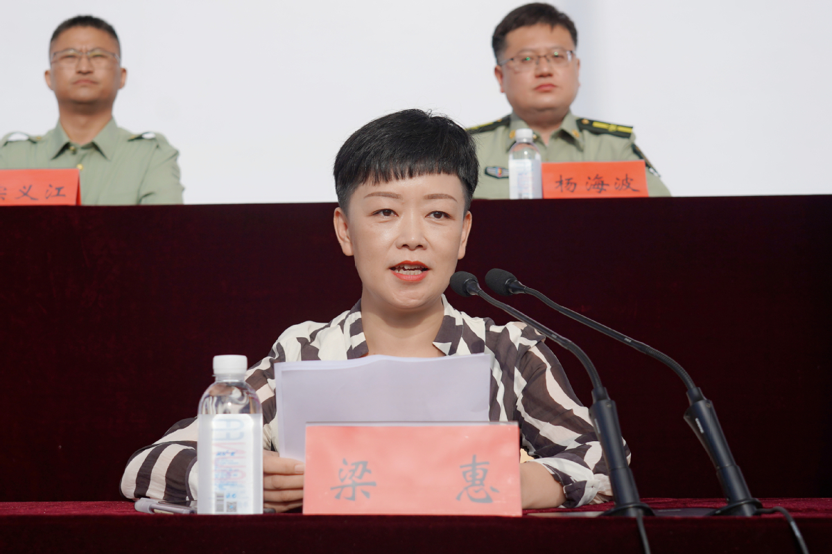 梁惠作动员讲话,她向全体21级参训同学简要介绍了学校的军校历史与军校文化传承情况,并着重强调了军训的目的与意义。梁惠指出,希望同学们通过军训强化国防意识,践行使命担当,磨练顽强意志,锻炼坚毅品格,练就过硬作风,争当先进标兵。