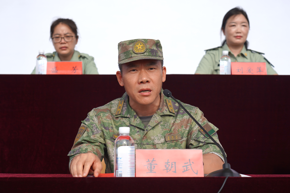 董朝武代表承训部队致辞,简要介绍了该部队传承和践行的“两不怕”精神。他要求全体教官务必做到认真、科学施训,全体学生务必做到端正思想、遵守纪律、吃苦耐劳、不留遗憾。