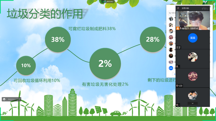 巧用“互联网+” 让垃圾分类入脑入心。宣讲团成员们充分利用互联网思维,通过“演绎、交流”等方式,发挥特长优势,借助腾讯会议等多媒体平台进行绿色文明宣讲。倡导广大社区党员干部与居民群众共同践行文明健康、低碳环保的生活方式,培养勤俭节约的生活习惯。
