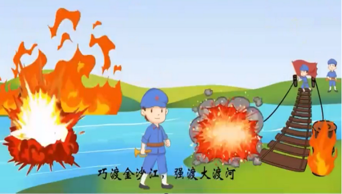 “五岭逶迤腾细浪,乌蒙磅礴走泥丸。金沙水拍云崖暖,大渡桥横铁索寒......”宝藏屋内传来了齐同学慷慨激昂的诗词朗诵,把我们的思绪拉回了革命年代,结合对诵、齐诵,再现了红军长征艰苦光辉的战斗历程。小朋友们感同身受,纷纷感慨:“征途如此艰险,红军叔叔们都没有气馁,不畏艰险,和他们相比我们遇到的困难不算什么。”通过“讲+诵”的活动形式,孩子们在获得知识的同时也感受到了红色文化所带来的感染力与凝聚力。