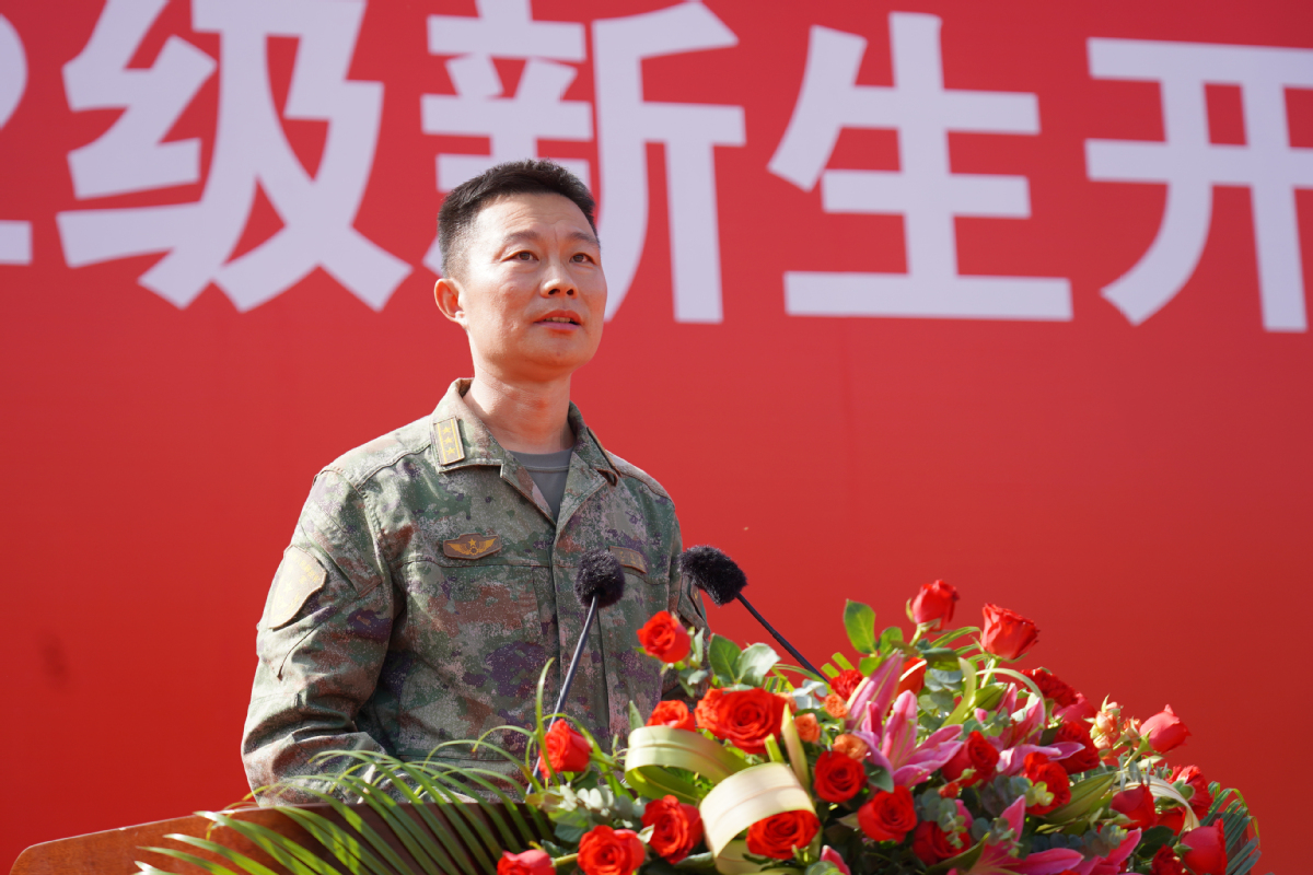 巴红升代表承训部队发言,向与会人员重点阐释了开展大学生军训的目的与意义并简要解读了承训部队所传承的王杰精神“一不怕苦、二不怕死”的精神内核。他勉励同学们在军训过程中不断强化国家兴亡、匹夫有责的责任担当,严守军训纪律,勇于吃苦磨练,敢于挑战自我,以高质量、高标准、高要求完成军训任务。