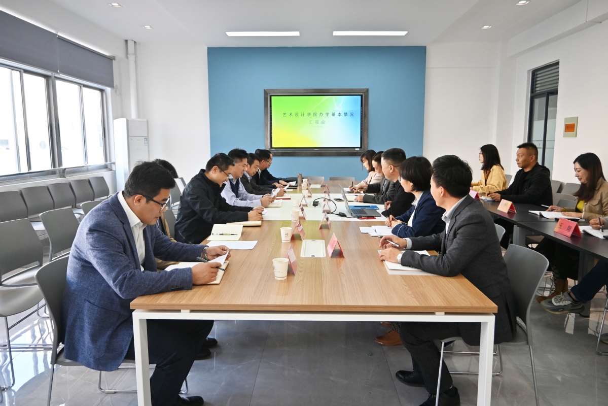 会上,朱东风听取了艺术设计学院负责人作的《汲取“在地性”文化养分,铸造特色设计学院》的办学情况汇报,对学院近年来的办学成绩、积累的特色优势予以肯定。他说,艺术设计学院立足专业特色优势,围绕服务区域经济社会发展,展现出了“有特色、有干劲、有朝气、有成绩”等几个方面的特点。他就学院进一步加强自身建设提出四点意见:一是要系统谋划事业发展,将发展规划、发展定位与贯彻落实党的二十大精神、学校第三次党代会精神及学校“十四五”规划相结合,进一步细化目标任务,深挖专业特色优势,在呼应国家乡村振兴战略、围绕学校“智能建造”发展方向上做文章;二是要强化师资队伍建设,重点在补充高层次人才队伍、加强学生管理队伍建设上下功夫,以优质的师资队伍保障教育教学改革和艺术人才培养再创佳绩;三是统筹好事业发展与安全稳定,做到推动办学事业高质量发展和守牢安全稳定底线同步发力,不断夯实办学事业发展根基;四是要扎实做好“双高”建设,加强与校内其他部门的联系沟通,协作完成造物设计中心的改造,将艺术展厅、手工艺工坊集成一体,以满足“教学工厂”的需要,做成“双高”专业群建设校本实训资源的样板。