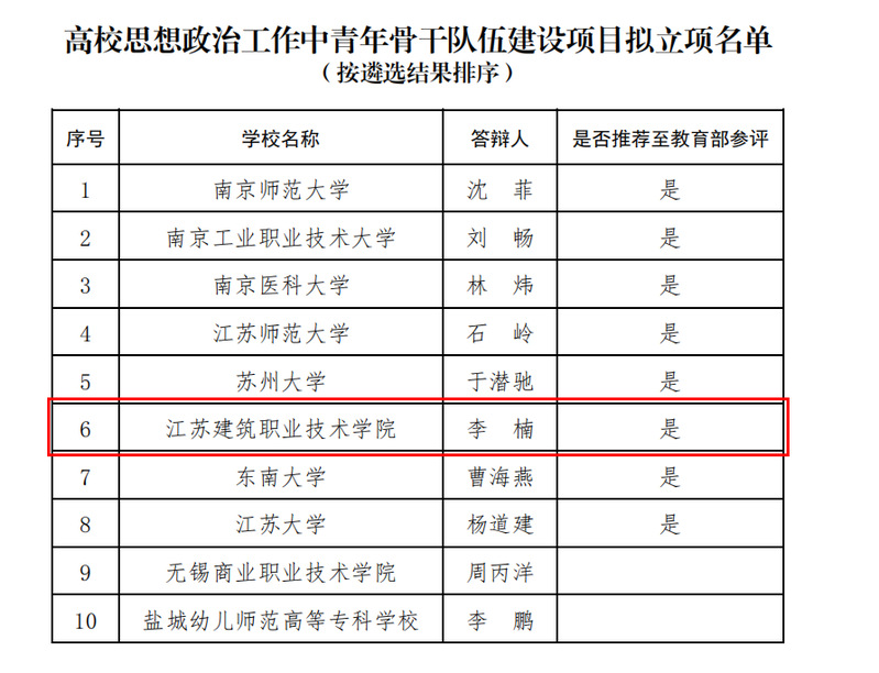 近日,江苏省教育厅社政处公布了2022年度江苏高校思想政治工作质量提升工程有关建设项目结果,艺术设计学院李楠老师牵头打造的《青春舵手 铸魂育人》项目成功入选中青年骨干队伍建设项目,并同时获得推荐教育部参加全国范围评选的资格。据了解,全省各高校共10支团队获批立项,其中高职院校团队3支。