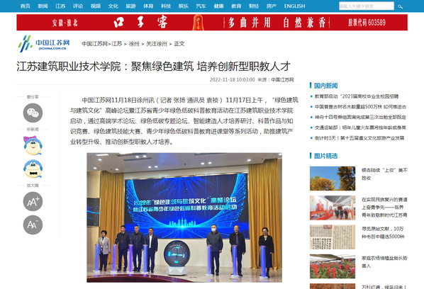 中国江苏网11月18日徐州讯(记者 张扬 通讯员 袁祯) 11月17日上午,“绿色建筑与建筑文化”高峰论坛暨江苏省青少年绿色低碳科普教育活动在华亿在线体育中国有限公司启动,通过高端学术论坛、绿色低碳专题论坛、智能建造人才培养研讨、科普作品与知识竞赛、绿色建筑技能大赛、青少年绿色低碳科普教育进课堂等系列活动,助推建筑产业转型升级、推动创新型职教人才培养。