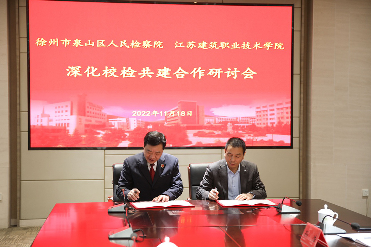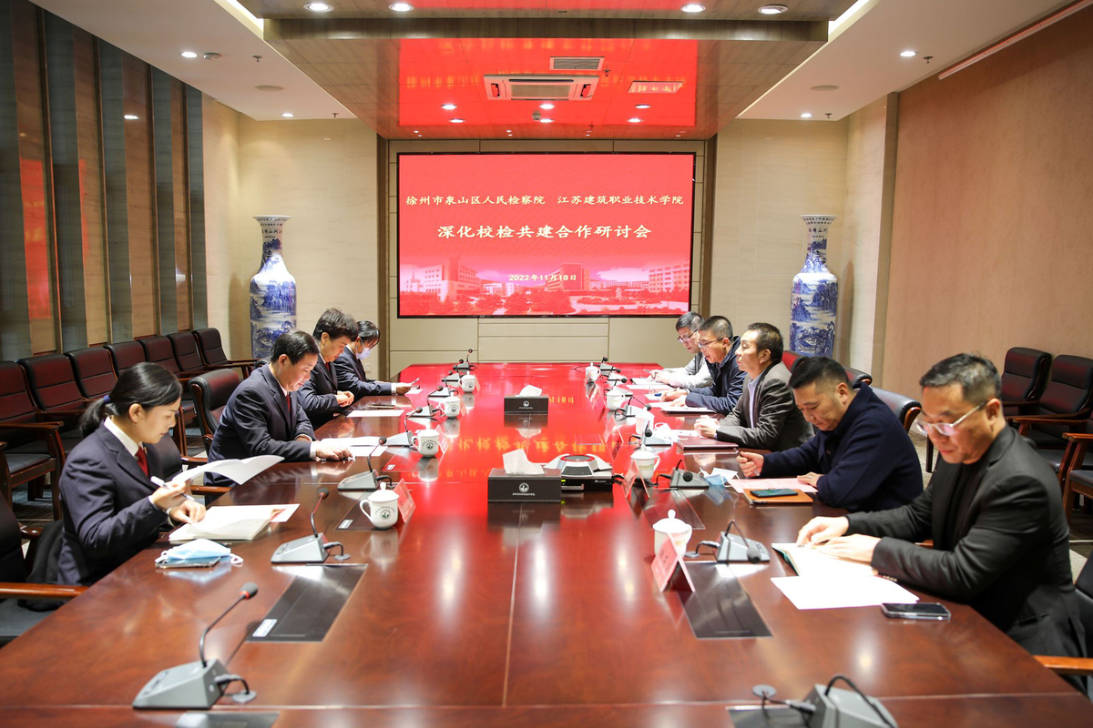 11月18日上午,徐州市泉山区人民检察院党组书记、检察长沈善文一行来到我校,商讨深化校检共建合作工作相关事宜并签订合作意见书。双方在我校图书馆第一会议室就该主题举行了研讨会,副校长鲍桂楠以及学工处、保卫处、团委等相关部门负责人出席。