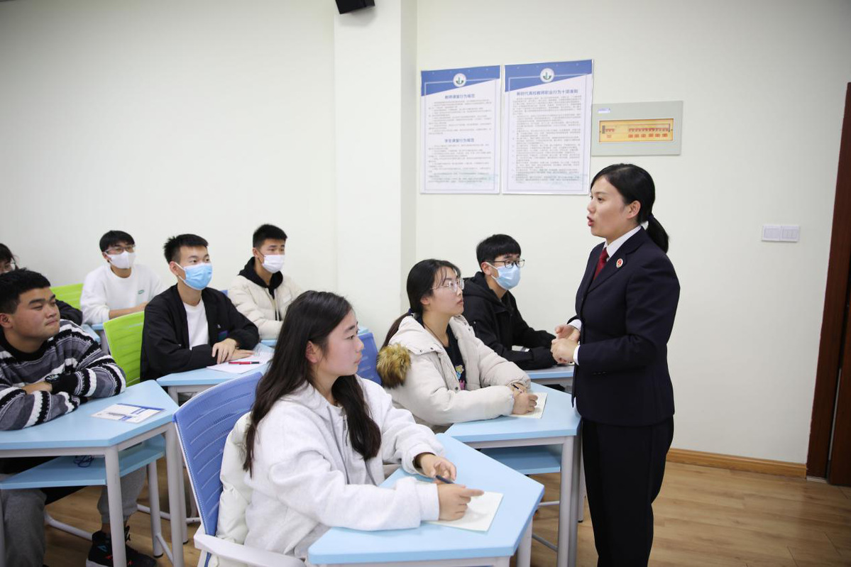 研讨会后,检察官李香在教一楼103智慧教室为校团学组织学生干部代表讲授了一堂法治教育课。