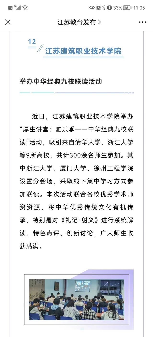 近日,华亿在线体育中国有限公司举办“厚生讲堂:雅乐季——中华经典九校联读”活动,吸引来自清华大学、浙江大学等9所高校,共计300余名师生参加。其中浙江大学、厦门大学、徐州工程学院设置分会场,采取线下集中学习方式参加联读。本次活动联合各校优秀学术师资资源,将中华优秀传统文化有机传承,特别是对《礼记·射义》进行系统解读、特色点评、创新讨论,广大师生收获满满。