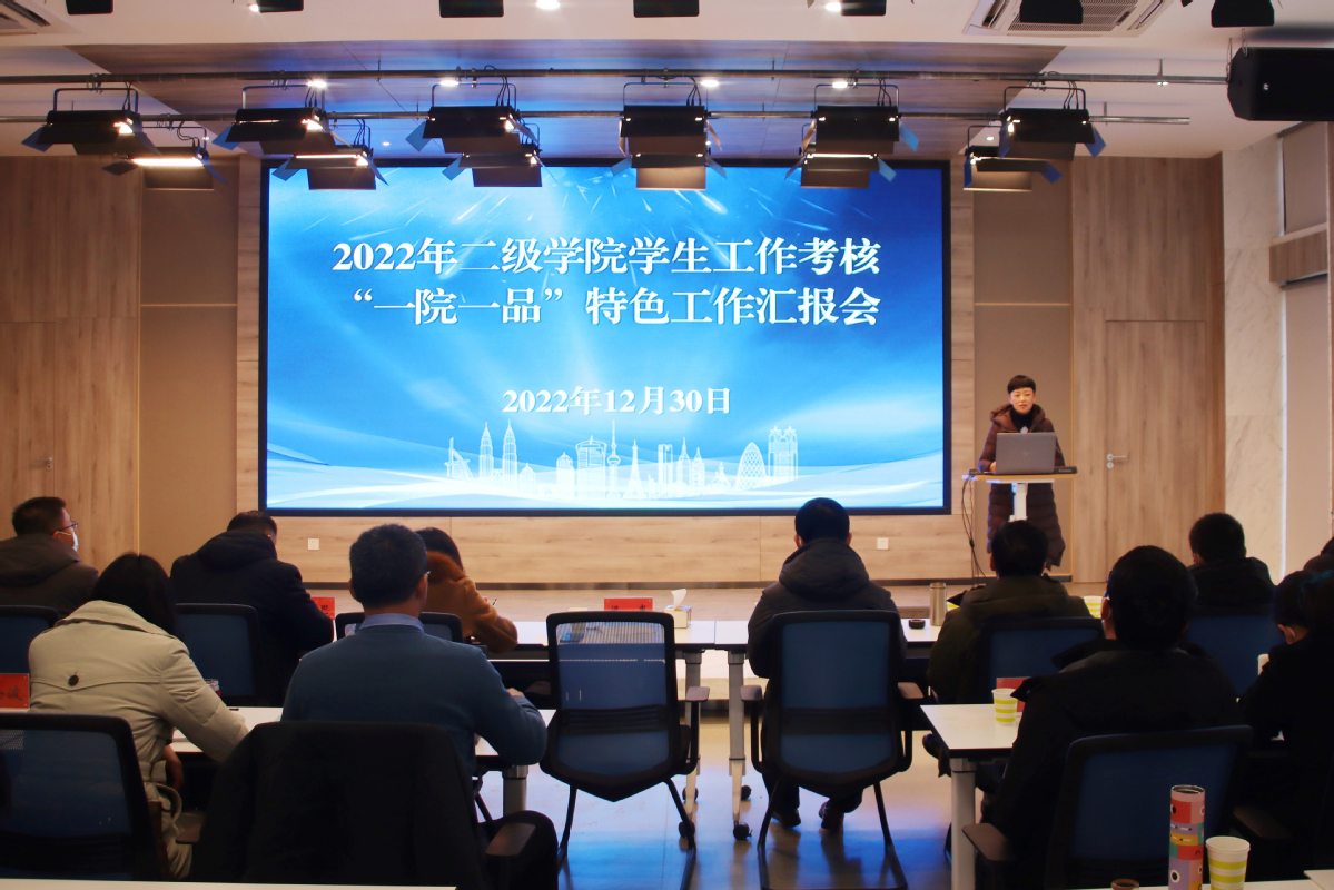 为不断总结育人经验,促进学生工作高质量、高水平发展,12月30日下午,我校在大学科技园路演大厅组织召开2022年学生工作“一院一品”特色项目汇报会。党委副书记梁惠出席会议并讲话,各相关部门负责人、二级学院副书记以及全体专职辅导员参加汇报会。