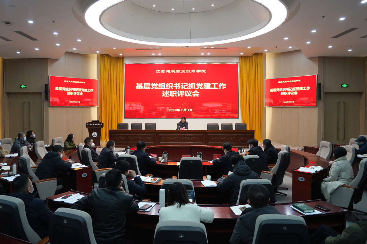 为加强基层党组织党建工作经验交流,以坚实组织基础保障学校各项事业高质量发展,1月3日,我校2022年度基层党组织书记抓党建工作述职评议会在学术报告厅举行。党委书记朱东风、校长沈士德、党委副书记梁惠、副校长鲍桂楠、纪委书记朱作付、副校长刘海波、副校长蒋兆峰以及各相关职能部门、二级党组织负责人参加会议。会议由党委委员、党委组织部部长宋丹萍主持。