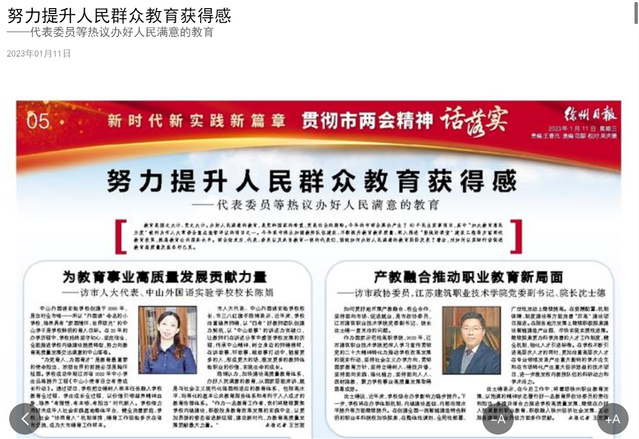 沈士德表示,在今后工作中,将着眼徐州职业教育发展,以饱满的精神状态履行好一名教育界政协委员的责任和担当,多措并举合力推进学校高质量发展,继续在办好人民满意的职业教育、积极融入徐州经济社会发展、主动服务建筑产业升级方面多作贡献。