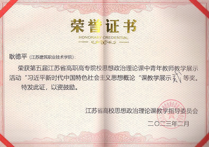 2月12日,第二届全省高校思政课教学展示遴选暨第五届江苏省高职高专院校思想政治理论课中青年教师教学展示活动决赛在连云港师范高等专科学校举行。经过角逐,我校马克思主义学院教师于静获“思想道德与法治”课教学展示一等奖,耿德平获“习近平新时代中国特色社会主义思想概论”课教学展示二等奖。