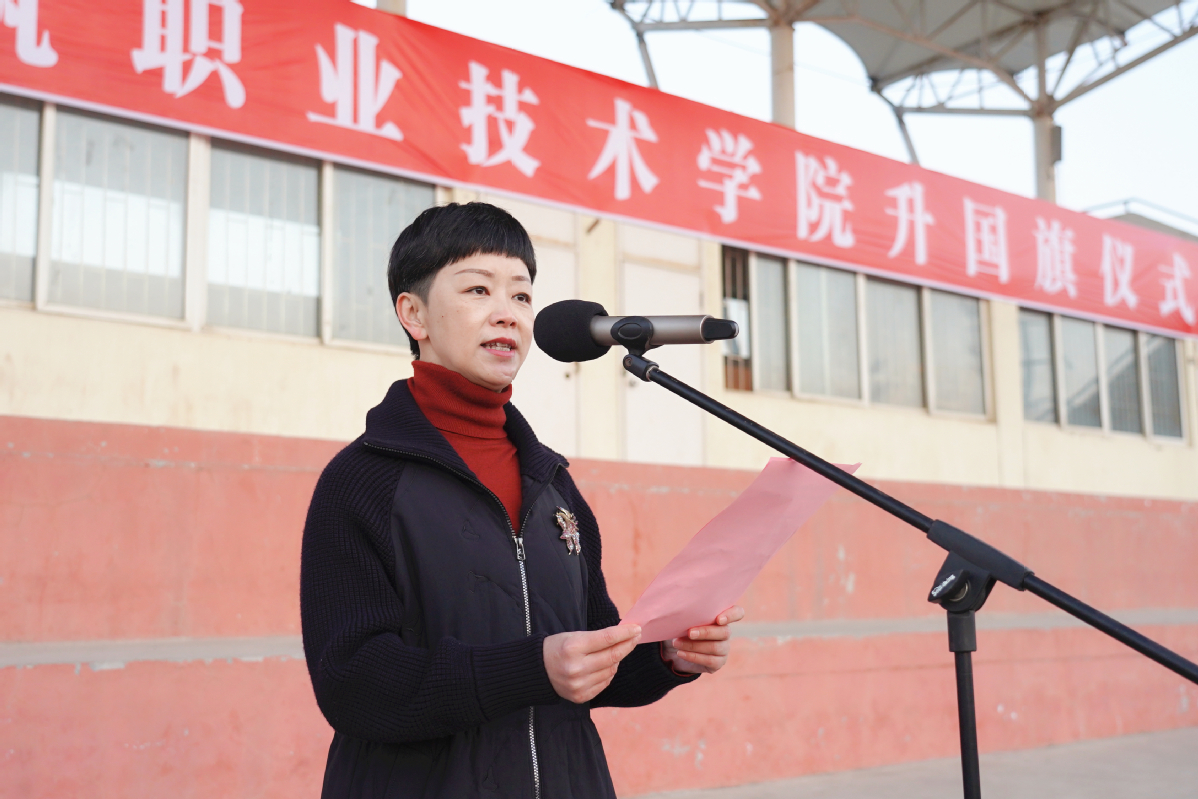 2月20日清晨,我校新学期首次升国旗仪式暨“开学第一课”主题活动在西操场举行。党委书记朱东风、党委副书记梁惠、各相关职能部门负责人、各二级学院党总支副书记、全体专兼职辅导员以及全体在校学生参加活动。升旗仪式由梁惠主持。