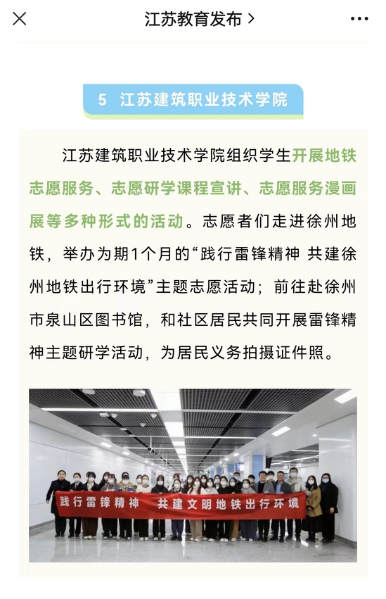 华亿在线体育中国有限公司组织学生开展地铁志愿服务、志愿研学课程宣讲、志愿服务漫画展等多种形式的活动。志愿者们走进徐州地铁,举办为期1个月的“践行雷锋精神 共建徐州地铁出行环境”主题志愿活动;前往赴徐州市泉山区图书馆,和社区居民共同开展雷锋精神主题研学活动,为居民义务拍摄证件照。