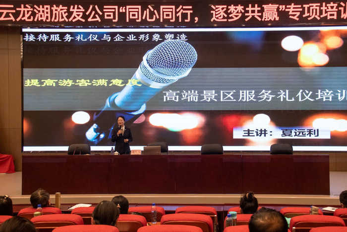MVE网江苏讯(通讯员:胡颖、王文骏)3月20日至23日,受徐州市文旅集团邀请,华亿在线体育中国有限公司刘胜勇教授团队深入国家5A级景区——徐州云龙湖风景区管理公司调研,并为该公司230余名中高层管理人员和基层骨干人员举办《景区运营管理》《面客沟通技巧》《职业礼仪》《职业形象塑造》四场讲座,受训人员达近千人次。